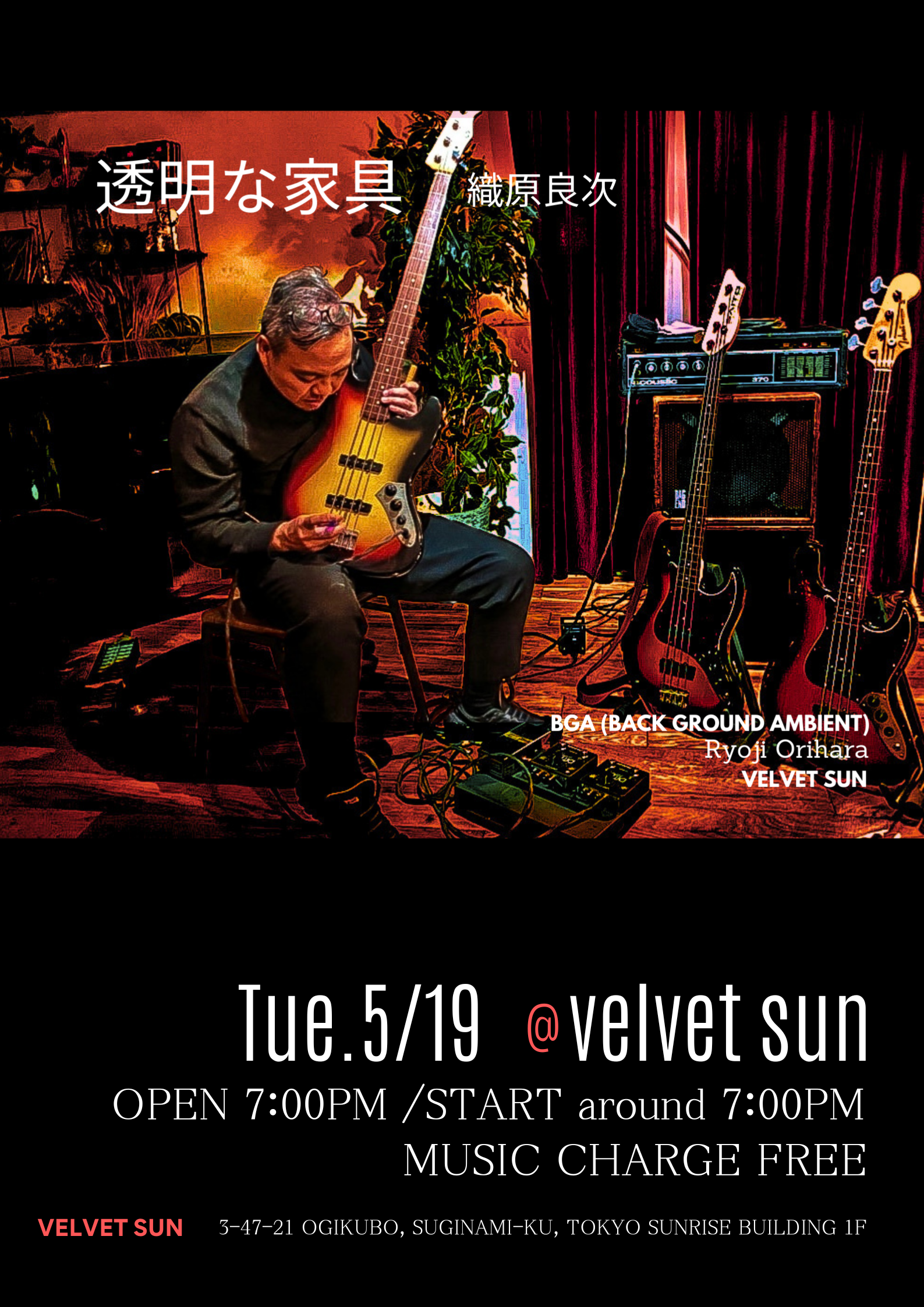 私、フレットレスベース奏者織原良次の演奏するBGAを背景に、