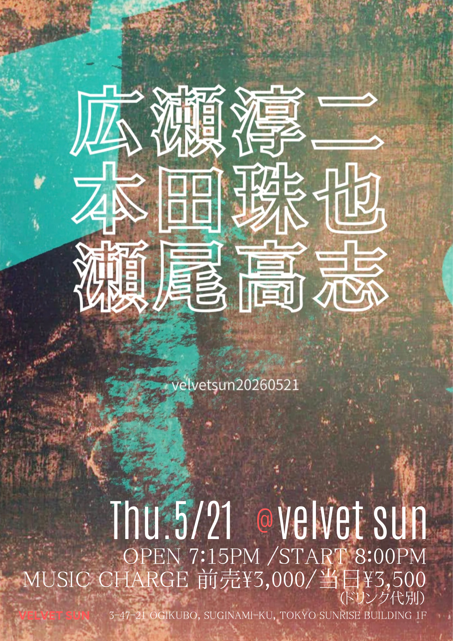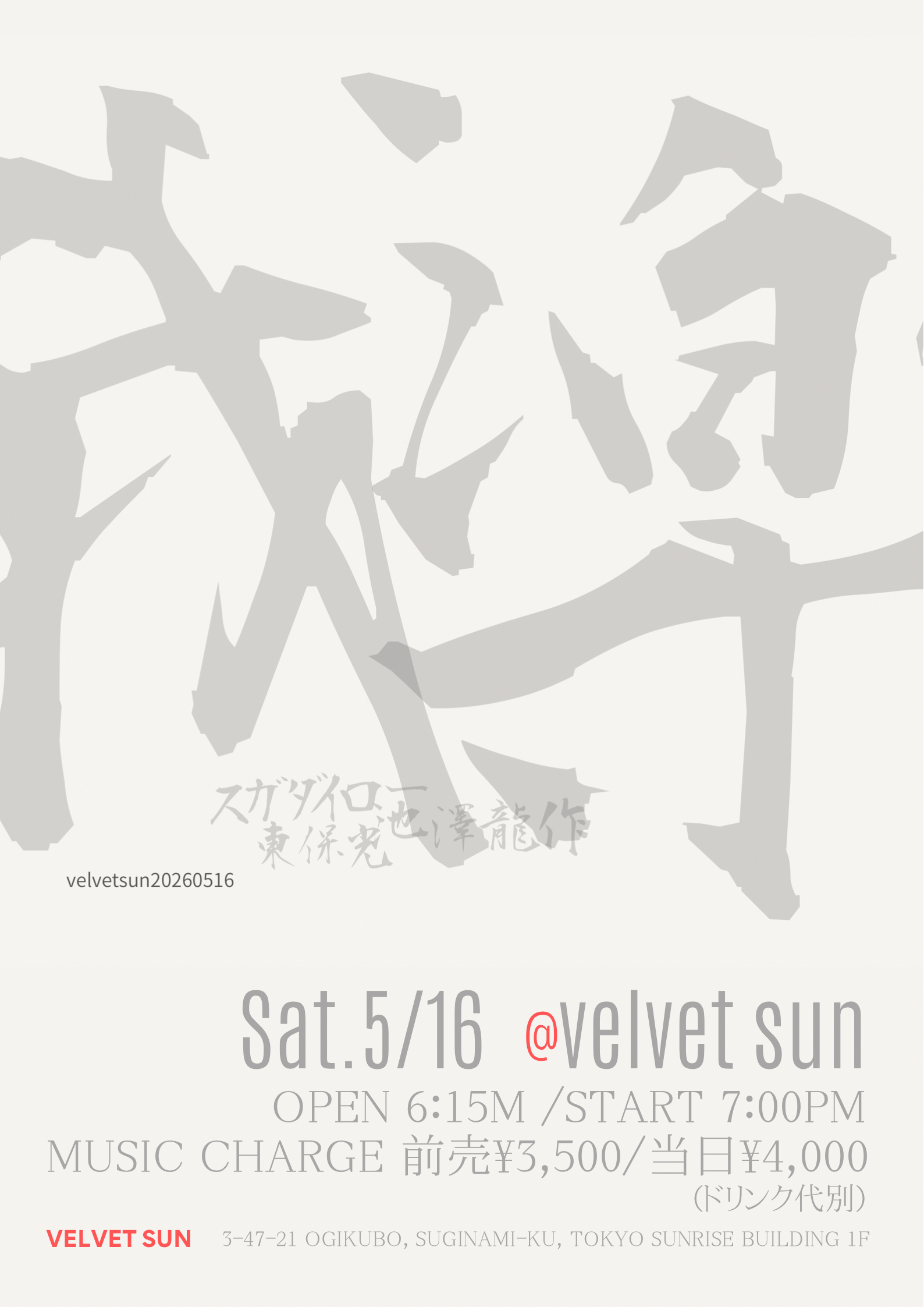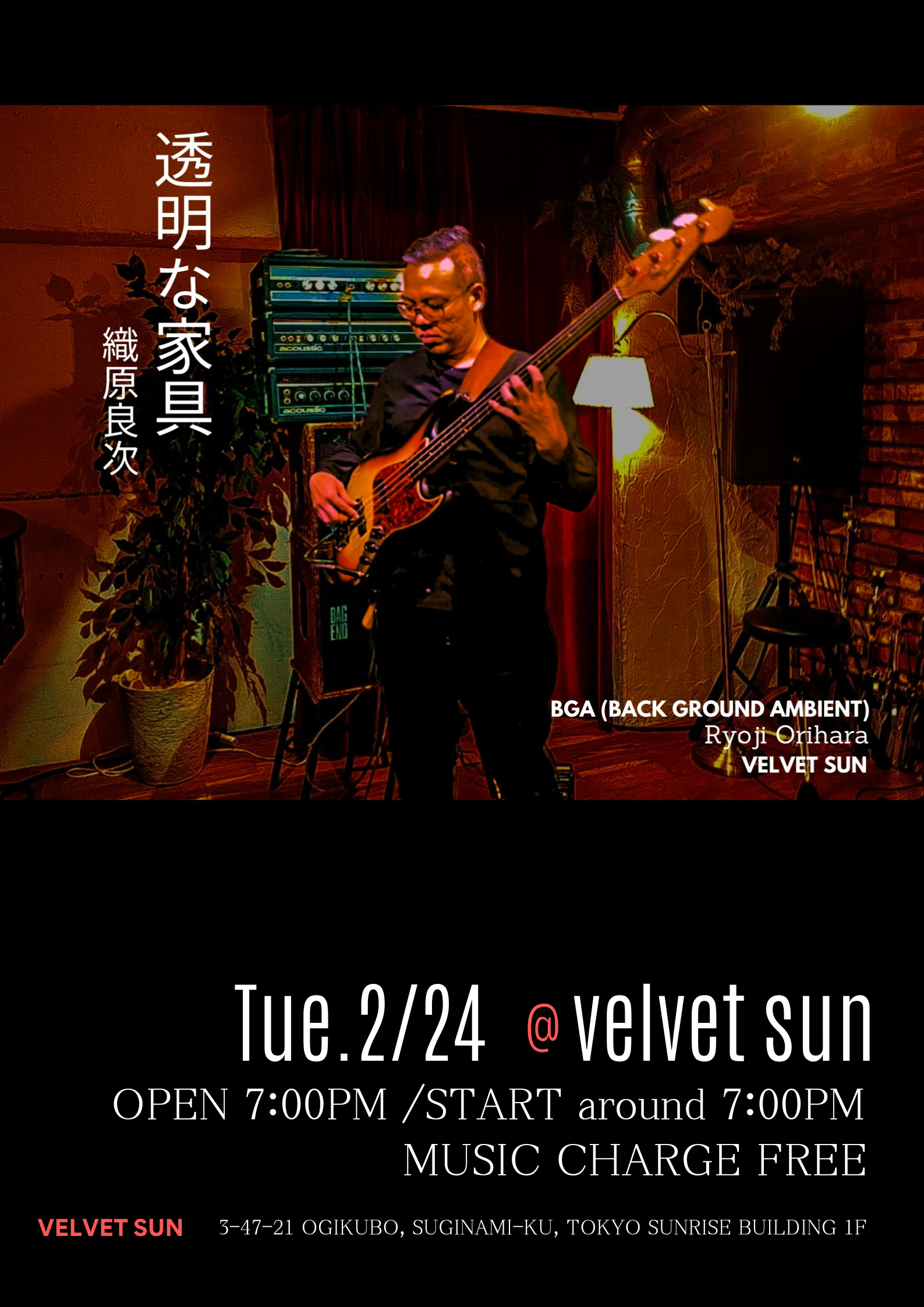 2月24日(火) 19:00頃〜(終了時間未定) Tuesday February 24th around 7PM
