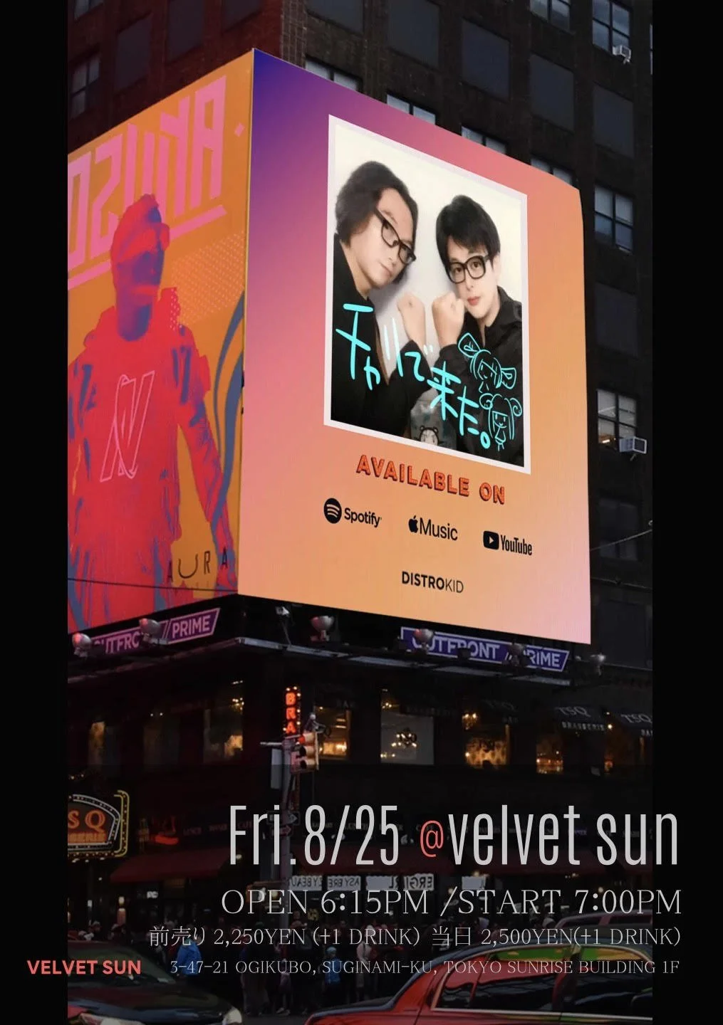 charge : 前売り 税込2,250円 (+ドリンク代別)