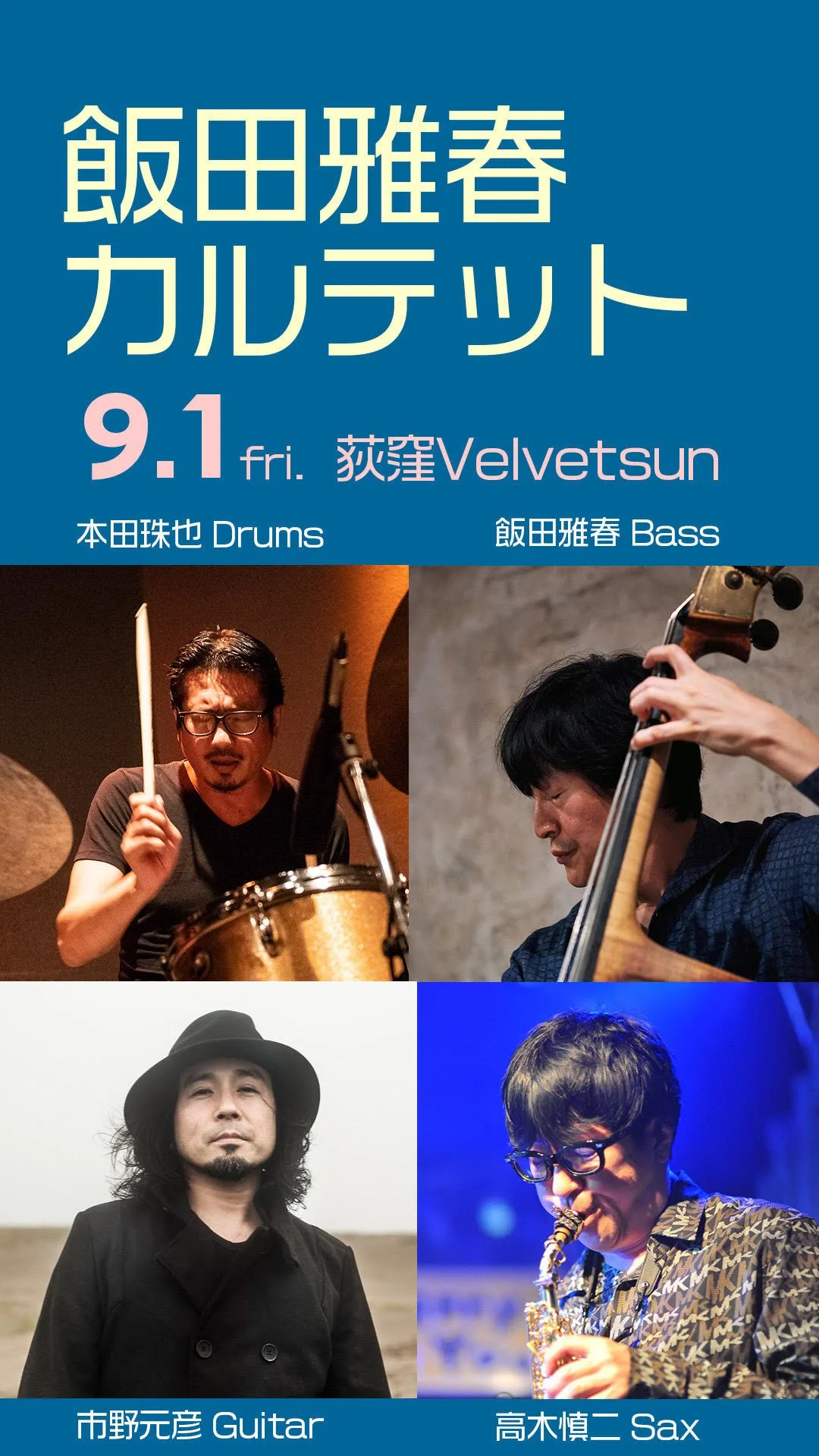 8/31(Thu) Ishikawa-Satoh Codeless Quartet(石川広行 佐藤恭子 座小田諒一 秋元修)