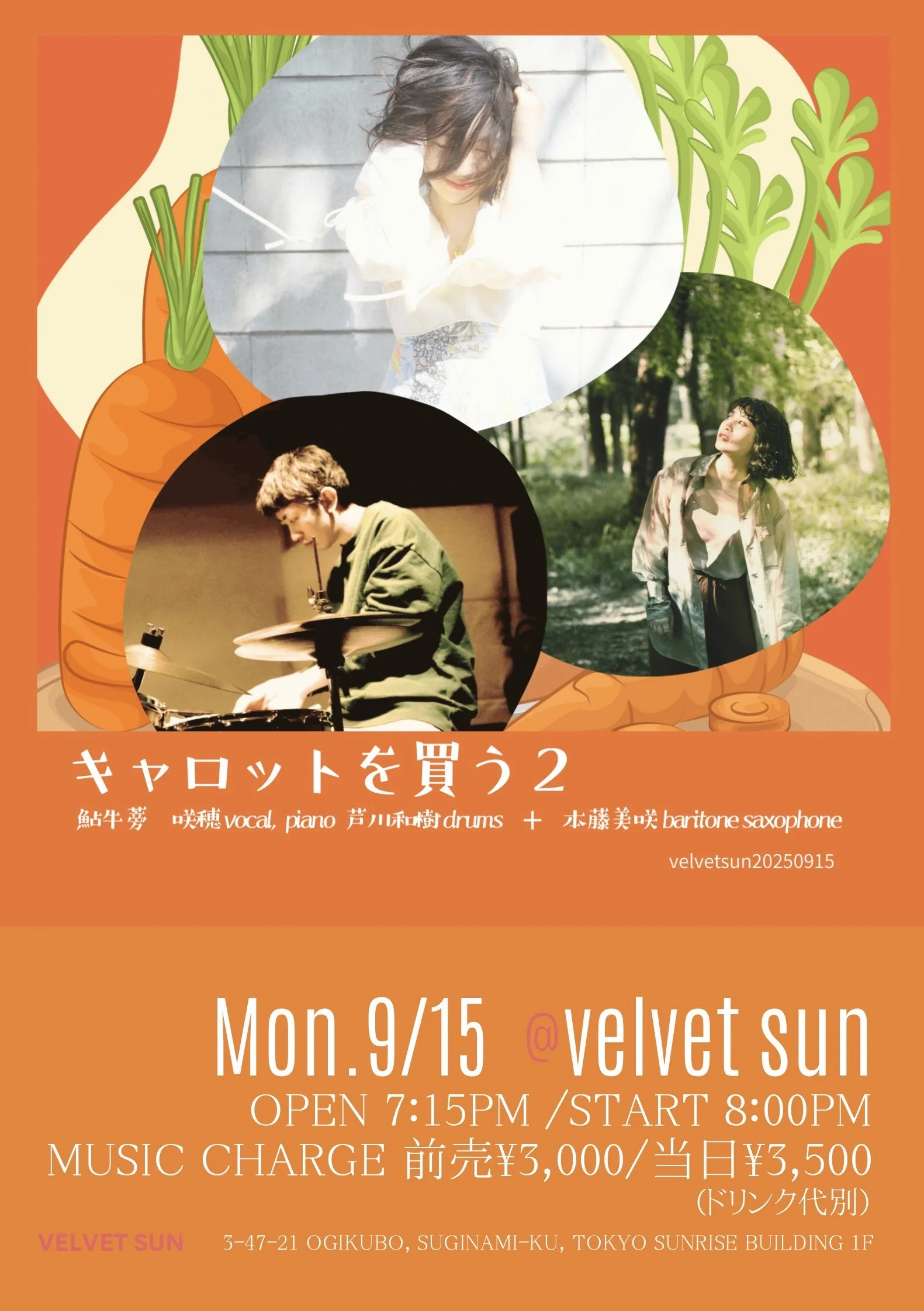 7月にやった本藤さんとのトリオ、すごくおもしろかったのでその日に決めた「2」です。即興も歌も、思ったことが育つ。もう夏は終わりましたか、応答せよ〜、こちらは夏です。人参浴がそろそろ必要