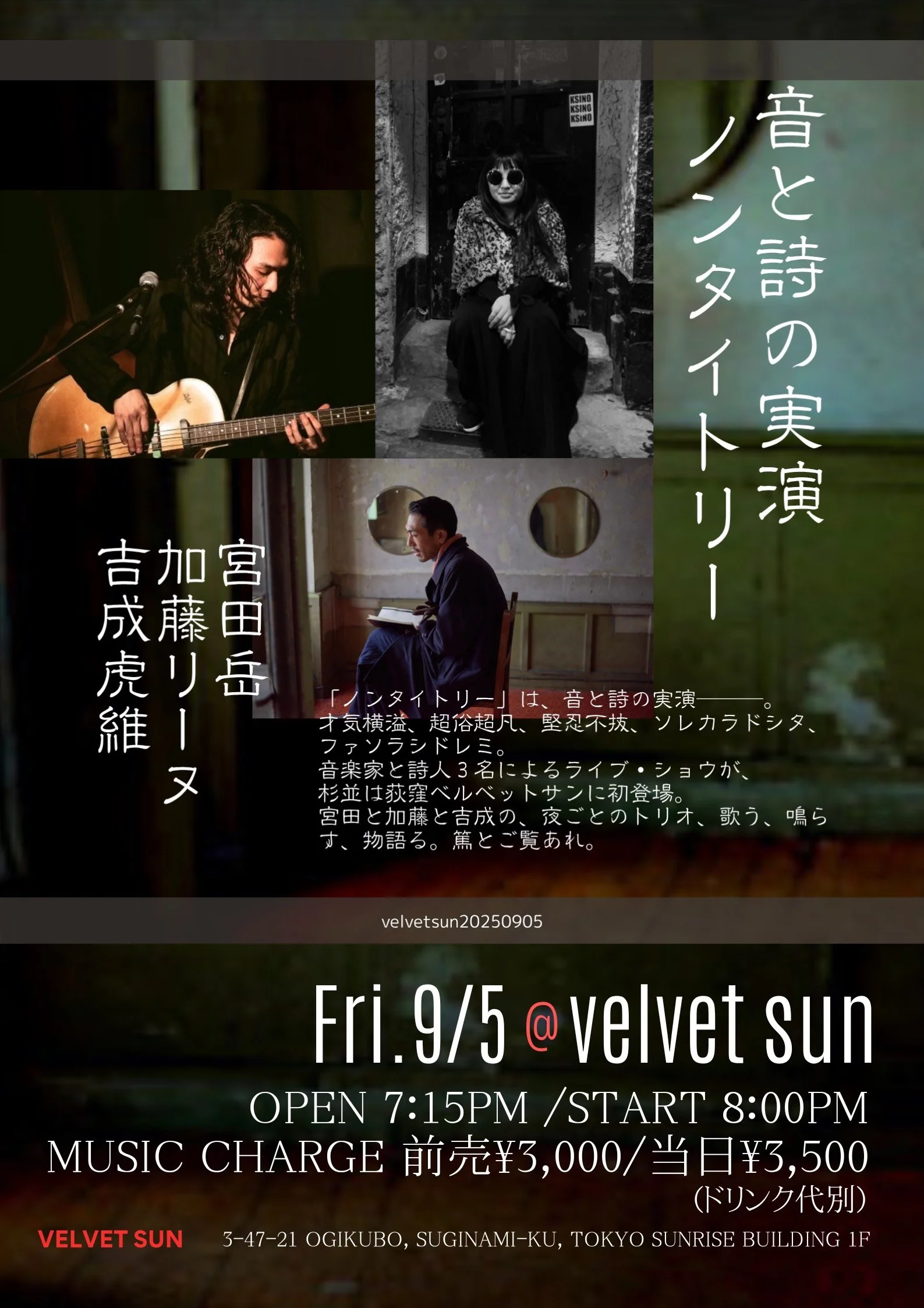 音楽家と詩人3名によるライブ・ショウが、杉並は荻窪ベルベットサンに初登場。